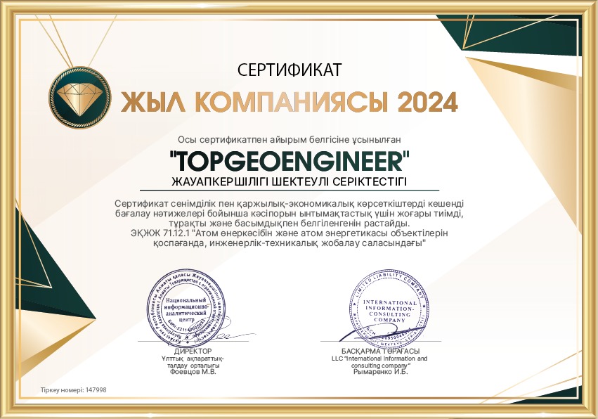 Ответственный подход, налаженная база буровых установок и лабораторий по всему РК, присутствие партнеров геологов во всех регионах, работы над проектами любой сложности и масштаба. Обширный опыт реализованных проектов.